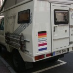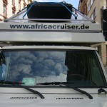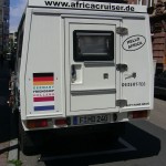 and now the car is really ours… we changed a little on the outside and had our friend Heiko add some stickers.. see the fotos above. we feel the excitement of departure day coming closer.. farewell drinks on monday with a good laugh and surely a sniff on tuesday morning when we departure from frankfurt… :-)))