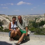 So what do you do after a few days of hanging on the beach of the med coast in the sun… Start our big white machine, and let it climb the Turkish coastal mountains into the interior!! According to the snorring sound and the black diesel fumes it was loving this climbing… and so did we both! The country changes often, the ride is great! Our goal in Kappadokia is (of course) Goereme.. Super scenery, rock cave ancient city, christians used to hide themselves and their churches in the caves, unbelievable views .. really a highlight! We found a good camping in town, spend a fun night drinking with two kiwi’s from london and a bit crazy bicyclists.. To all our „Streber“ sport friends back home: this couple rides their bicycles from London to Japan! (Will take about two years). We will (later) make a link to their website somewhere..