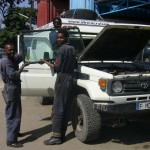 Auch unser Auto wird gefeiert, denn es hat in Addis eine neue Windschutzscheibe bekommen. Bereits seit der Türkei wo uns auf einer ganz gewöhnlichen asphaltierten Landstraße von einem überholenden Auto ein Stein entgegengeflogen ist, fahren wir mit einem großen Stern in der Scheibe herum, dessen Sprünge sich inzwischen über die ganze Länge und Breite der Scheibe ausgeweitet haben. Wir hatten uns zwar schon fast an den Anblick mit den Klebstreifenflicken gewöhnt, aber wir haben noch einige Rumpelpisten vor uns, die wir lieber mit einer heilen Scheibe befahren und der neue klare Blick gefällt uns auch wieder ganz gut.