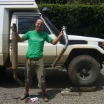 Schließlich sind alle da, Marc kann wieder gucken, wir können kein Steak mehr sehen, die Iren machen sich (jetzt zu fünft in einem Auto) auf den Weg in die Masai Mara, Michael und Claudia wollen nach Uganda, und wir haben Sehnsucht nach ein paar Strandtagen und machen uns mit endlich montiertem Auspuff auf den Weg nach Mombasa und dann zur Küste.
