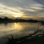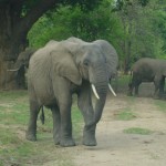 Wir lassen uns im wunderschönen Flatdogs Camp am Luangwa River nieder, dessen Nilpferde den ganz Tag über grunzen und die tatsächlich nachts auf dem Camp herumlaufen – in der ersten Nacht wären wir fast über eins drübergestolpert. Auch Krokodile leben gemütlich im Fluss (die bleiben zum Glück drin – hoffen wir wenigstens), und tagsüber schauen ab und zu Elefanten vorbei. Im Park selbst sind wir erst fast ein wenig enttäuscht – mal ein paar einzelne Tiere, aber keine Mengen und nichts ungewöhnliches – bis, ja, bis wir kurz nach Einbruch der Dunkelheit eine große fleckige Katze am Boden entdecken. Wir folgen ihr kurz zusammen mit noch einem zweiten Jeep, und er ist es endlich, unser lang ersehnter erster Leopard! Ein scheues, gewaltiges und faszinierendes Tier. Wir sind versöhnt und begeistert. Und am nächsten Morgen (ja, wir waren um 6:00 im Park) haben wir gleich den zweiten gesehen, diesmal sogar ganz alleine.