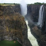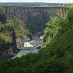 Auf nach Livingstone und zu dem Victoriafällen! Die zumindest müssen nach all dem Regen doch jetzt ansehnlich aussehen, denken wir. Aber hier ist von dem Wasser noch nicht allzuviel angekommen. Die Wasserfälle sind immer noch beeindruckend, aber bis zu dem großen Spektakel müsse man wohl noch so bis April warten, hören wir. Wir schauen den Bungee-Springern zu, die sich von der berühmten Victoria-Falls-Bridge in die Tiefe stürzen. Der Live-Anblick von oben ist überraschenderweise überhaupt nicht mit irgendwelchen Filmaufnahmen zu vergleichen –absolut haarsträubend!
