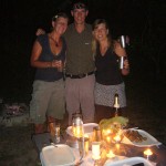 Wir fahren weiter Richtung Caprivi-Strip, wo wir in Ngepi (ja genau, dem Camp mit den lustigen Toiletten) am Okavango- Flussidyll zu viert stilvoll Heiligabend feiern. Wir haben einen festlich geschmückten Tisch mit Sekt, Lagerfeuer und Rinderfilet, die bunten Vögel hüpfen in den Bäumen herum und abends grunzen die Hippos im Fluss. Wir öffnen unsere Weihnachtsgeschenke (einige reisen schon seit Frankfurt mit uns), trinken Wein, gucken ins Feuer, hören den Hippos zu und denken natürlich viel an zuhause. Am nächsten Tag gibt es ein nicht weniger stilvolles Truthahn-Lunch im Freien am Fluss für alle rund 40 Ngepi-Gäste an langen Tischen mit Champagne, Christmas-Pudding und Knallbonbons. Am übernächsten Tag haben wir erstmal genug gefeiert und gefuttert, wir machen uns auf den Weg nach Botswana.