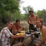 Zurück in Khorixas feiern wir nach fast zwei Wochen frisch geduscht Abschied von An und Jo, und schwelgen in Fleisch, frischem Gemüse und einer Menge Wein. Wir hätten uns keine besseren Mitfahrer für diesen Teil der Reise aussuchen können.