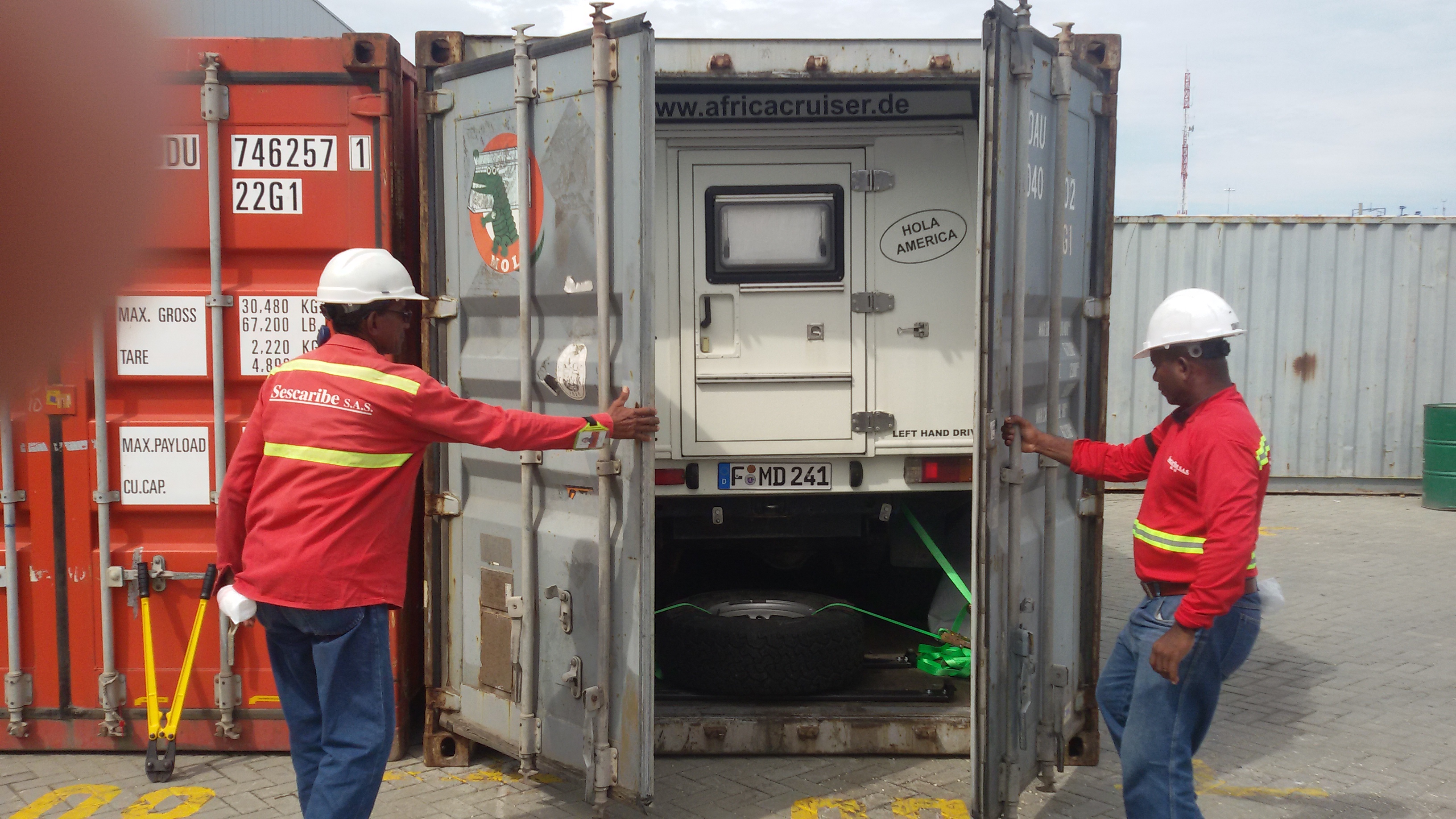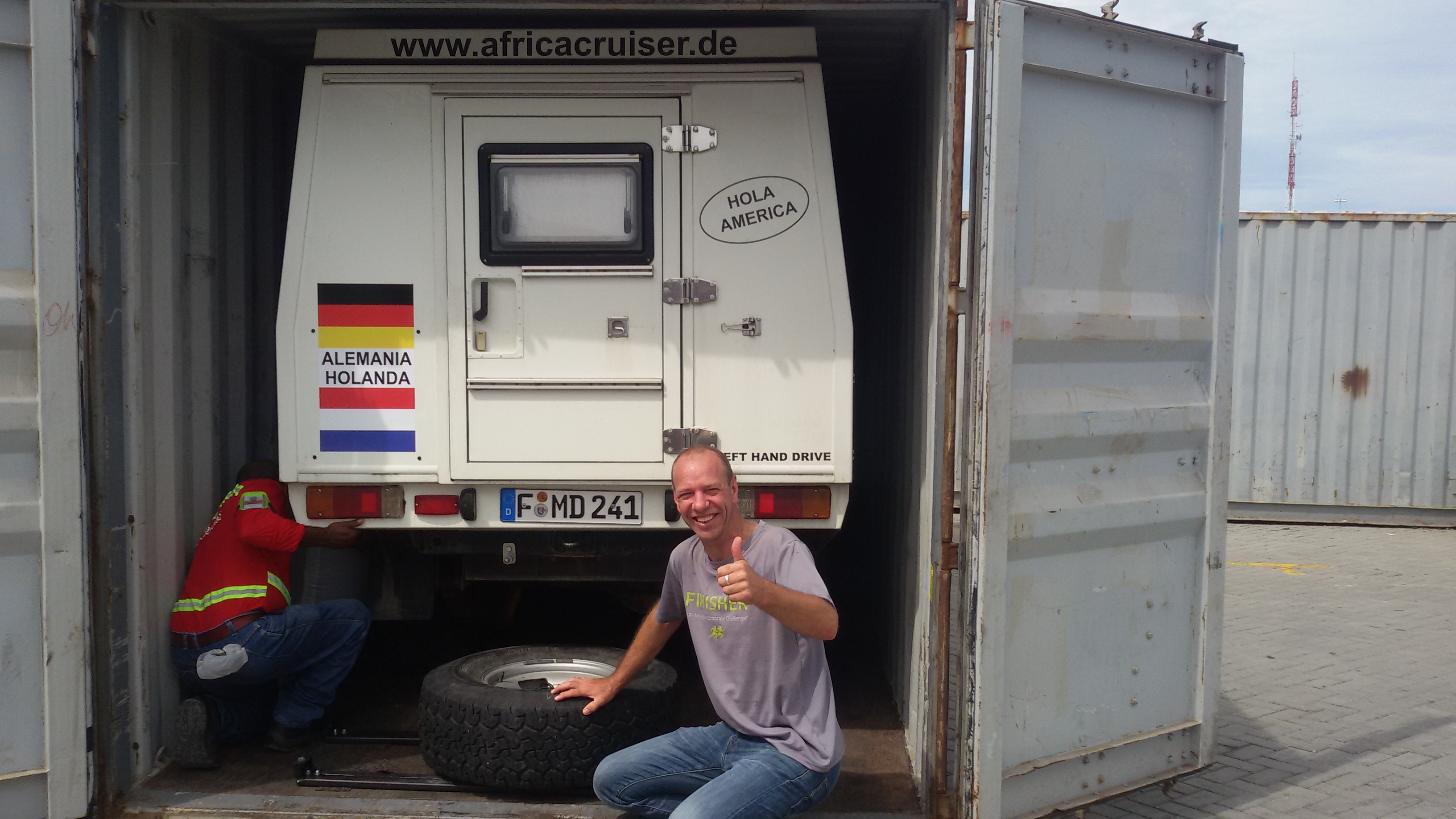 Allen anderen ersparen wir das, und können glücklich vermelden, dass Marc zusammen mit ein paar Hafenarbeitern das Auto wohlbehalten aus seinem Container befreit und in Gang gesetzt hat. Ich musste vor dem Eingang warten, aber alles egal, Hauptsache das Auto war heil und endlich wieder bei uns.