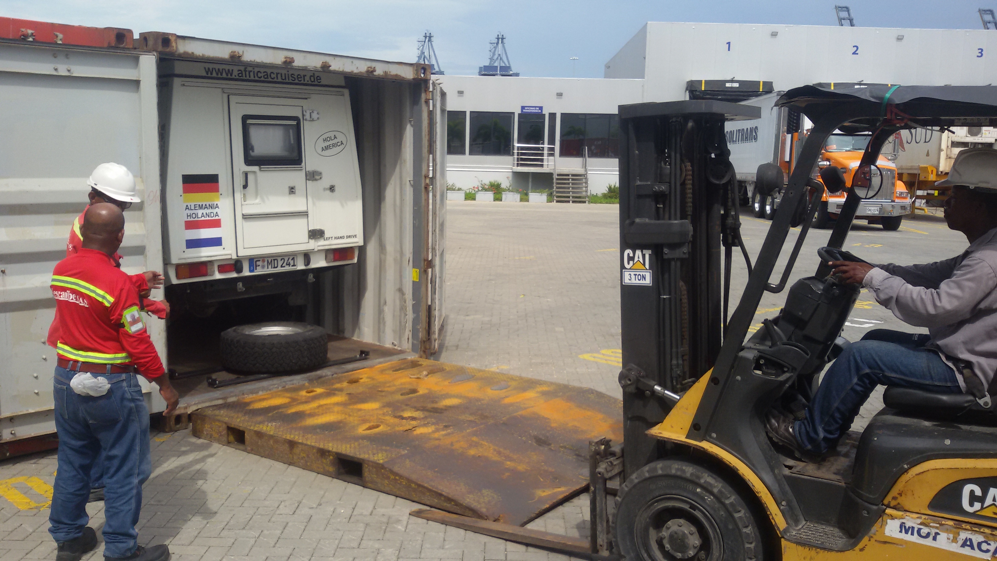 Dass man sein Auto nicht mal eben so an einem Nachmittag aus dem Container holt, das wussten wir. Die meisten Leute benötigen hier dazu knapp zwei Tage. Das hätte bei uns auch klappen können, wenn unsere Reederei mit einem anderen Handling-Agent zusammengearbeitet hätte. Dieser hier aber hat uns zwei Tage lang alle wahnsinnig gemacht, und schlussendlich die Prozedur auf vier volle nervenaufreibende Arbeitstage verlängert. Wer immer noch meint, wir würden ein Jahr “Urlaub” machen, dem erzählen wir gerne mal die Details. ![]()