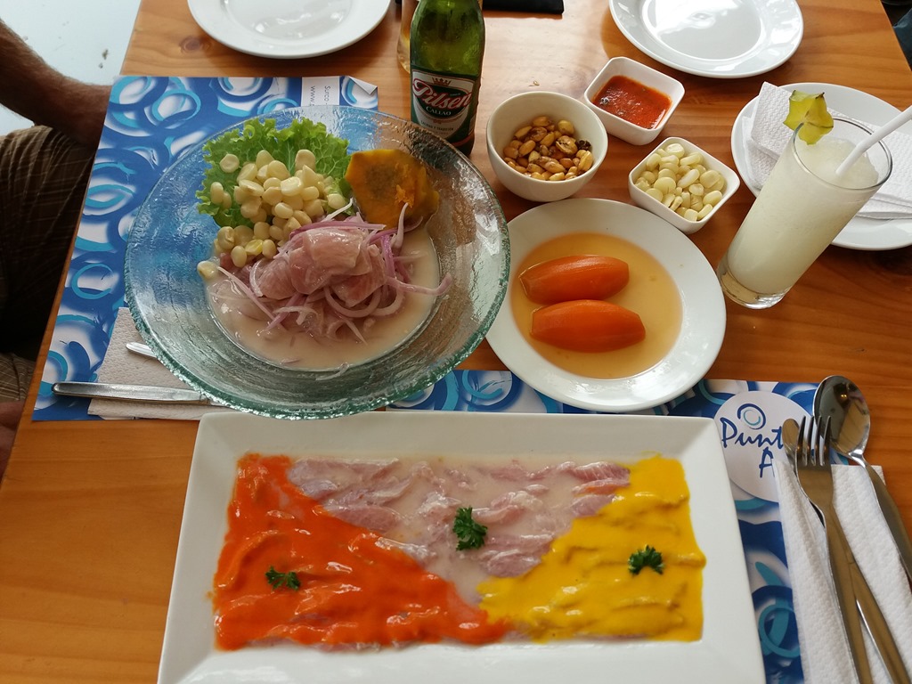 Mittag gibt es für uns hier wieder Mal jeden Tag Ceviche, ebenfalls eines leckerer als das andere. Hier ist das alles zwar für peruanische Verhältnisse teuer, für europäische aber durchaus erschwinglich, und wir futtern uns drei Tage lang durch die Restaurantszene.